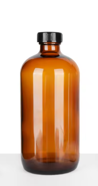 12 Pack 16 oz Amber Boston Round Glass Bottles with Black Caps Blocks UV rays ex
